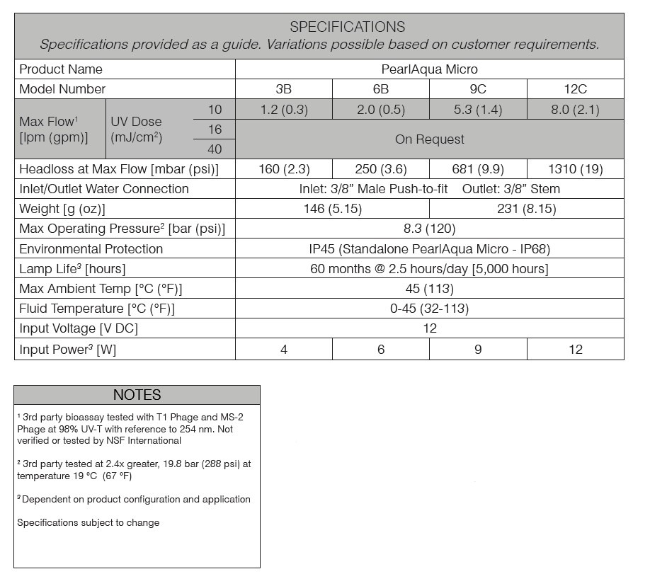 - This PearlAqua Micro is Tested and Certified by NSF International against NSF/ANSI Standard 55 for materials and structural integrity requirements.